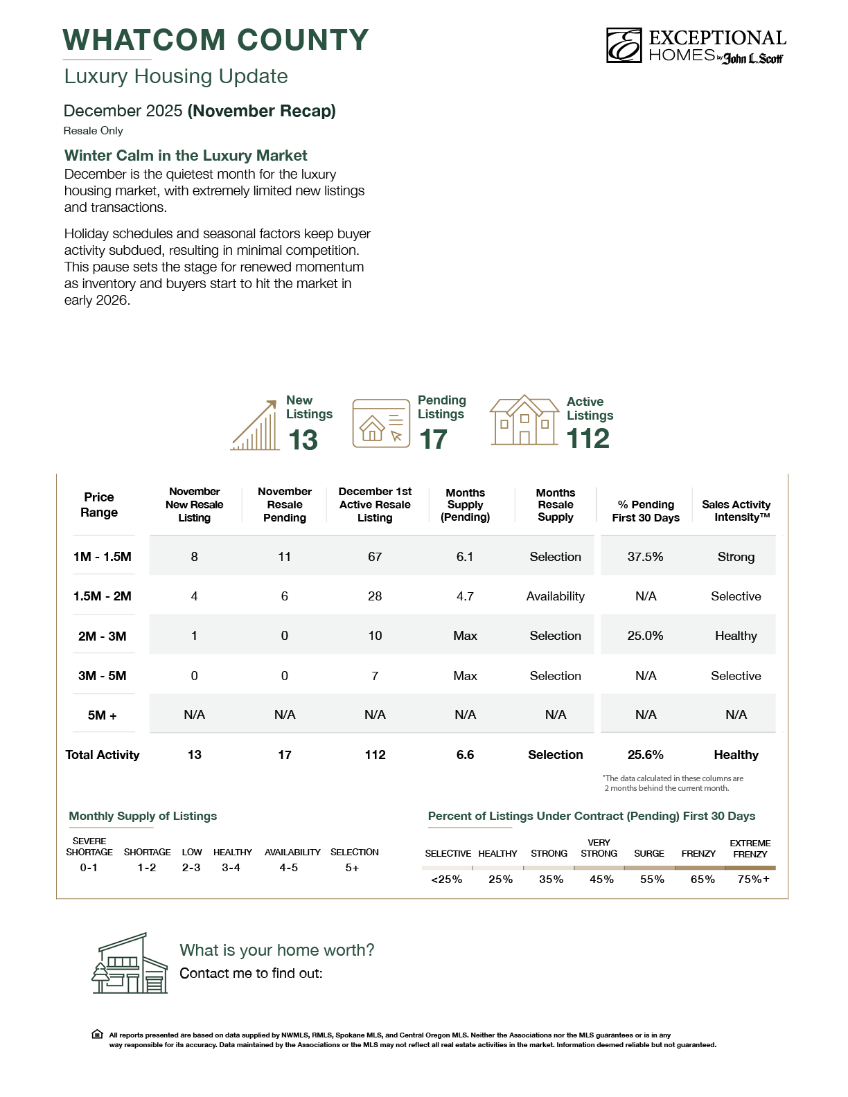 Holiday schedules and seasonal factors keep buyer activity subdued, resulting in minimal competition. This pause sets the stage for renewed momentum as inventory and buyers start to hit the market in early 2026.